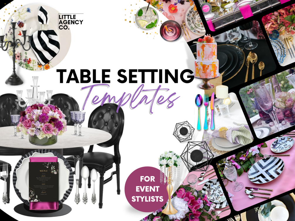 Event Planner Table Setting & Seating Canva Template Illustration Little Agency Co Wedding Mood Board Mockup Table Decor Setup Digital